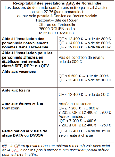 L’action sociale d’initiative académique (ASIA), récapitulée dans le tableau ci-après.
