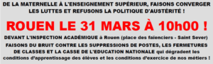Depuis des semaines, les actions se multiplient, souvent en intersyndicale : grève académique ou locale, rassemblements, action avec les parents d’élèves, opérations collèges morts, vote contre les répartition de moyens dans les CSA et les CA….D’autres sont prévues. Tout montre donc la détermination à dénoncer des choix qui vont, à rebours, de la nécessaire amélioration des conditions de travail des personnels et d’étude des élèves.