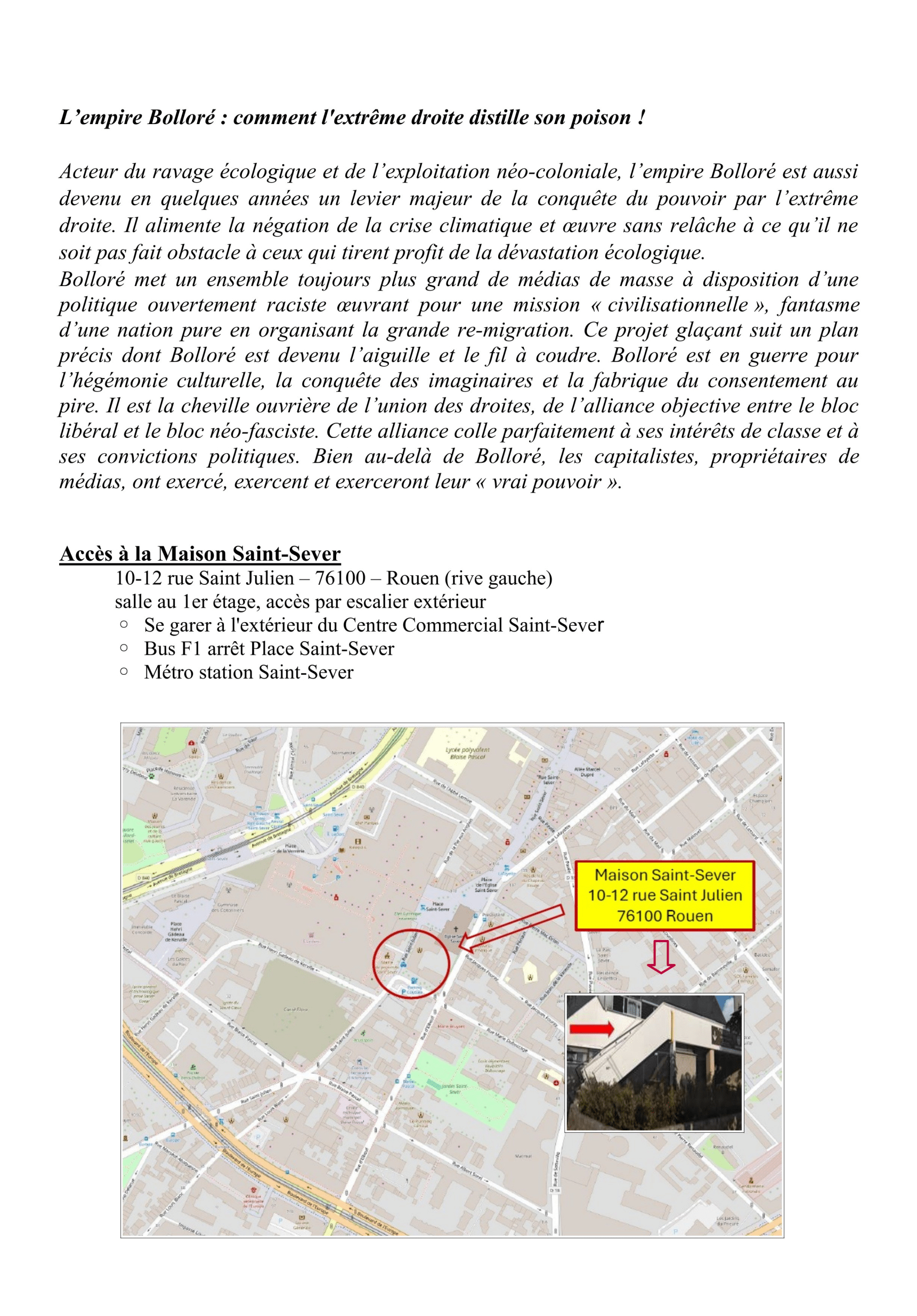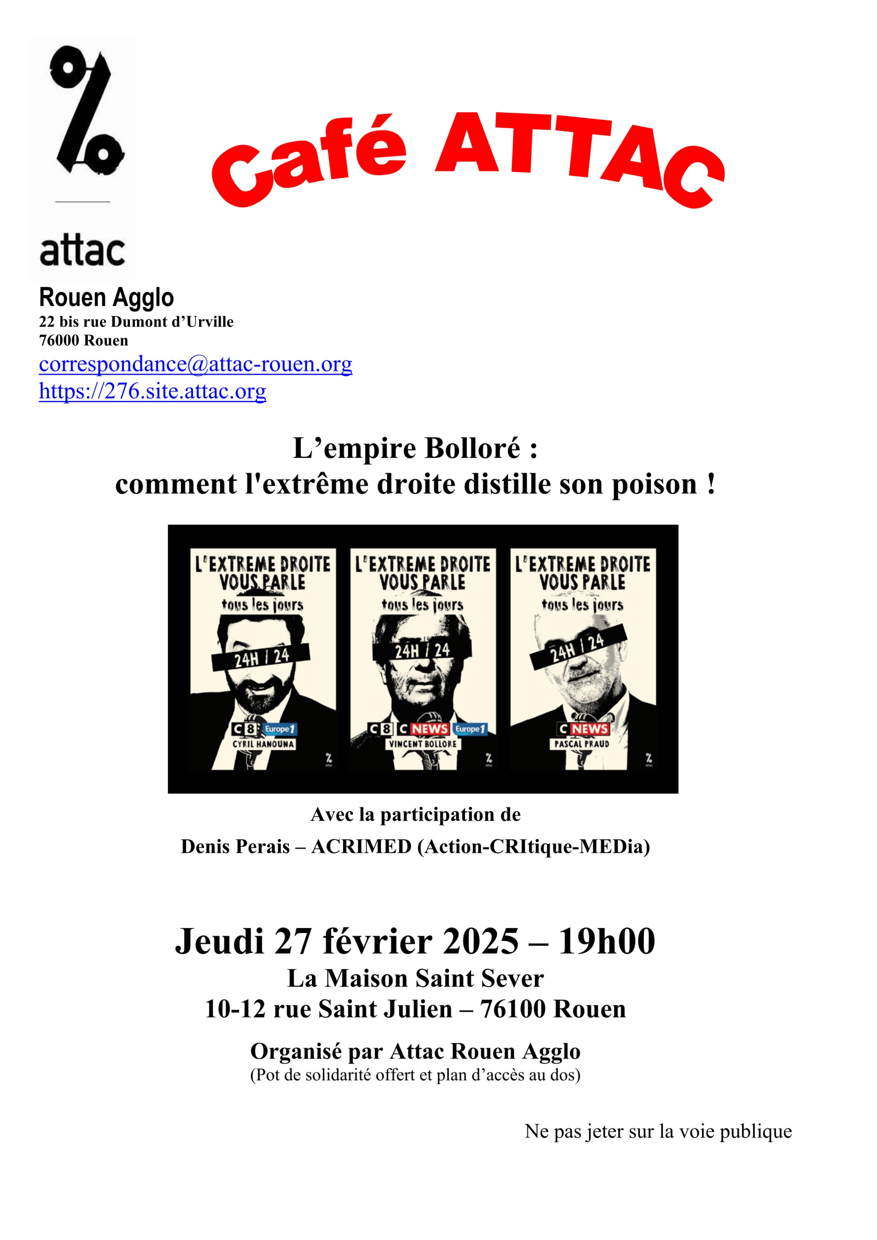 L’empire Bolloré : comment l’extrême droite distille son poison ! 2025-02-11T09:19:27+01:0011 février 2025|Catégories : À LA UNE|Mots-clés : DÉBATS| Partagez cet article ! FacebookXWhatsAppTelegramEmail Articles similaires Décès d’El Hacen Diarra : pour la vérité, la justice et une police exemplaire Décès d’El Hacen Diarra : pour la vérité, la justice et une police exemplaire 21 janvier 2026 La FSU76 répond à la demande d’information syndicale La FSU76 répond à la demande d’information syndicale 19 janvier 2026 Café Rouen féministe Café Rouen féministe 19 janvier 2026 Le 22 janvier l’Assemblée nationale doit rejeter l’attaque du 1er mai, seul jour obligatoirement chômé et payé Le 22 janvier l’Assemblée nationale doit rejeter l’attaque du 1er mai, seul jour obligatoirement chômé et payé 12 janvier 2026 Stage intersyndical RESF 10 MARS 2026 Stage intersyndical RESF 10 MARS 2026 11 janvier 2026